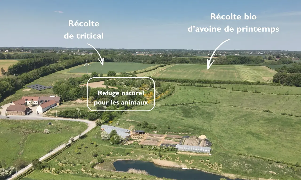 Autour des parcelles, des bandes fleuries ont été semées : un refuge pour coccinelles, abeilles, papillons et faune sauvage locale.