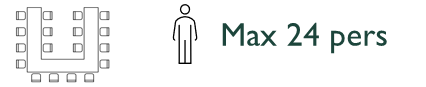 This configuration of the Houppier room is ideal for board meetings, committees, and project presentations.