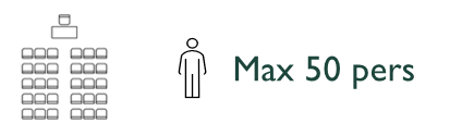 The semi-circular layout of the Houppier Room can accommodate up to 50 people for conferences or interactive training sessions.